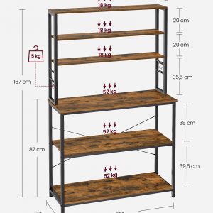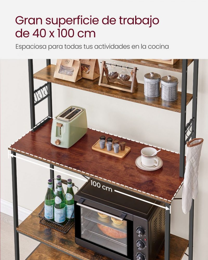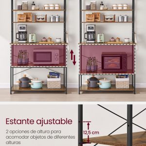 Esta estantería de cocina no solo es una solución de almacenamiento eficiente y elegante, sino también una adición duradera y segura para tu hogar. Con su amplia capacidad de almacenamiento y diseño versátil, es ideal para mantener tu cocina organizada y aprovechar al máximo el espacio disponible.