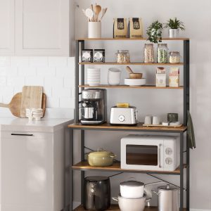 Construcción Sólida y Duradera: Combina un marco de acero robusto con tablero de aglomerado duradero para una estantería resistente y capaz de sostener tus electrodomésticos de cocina más pesados.