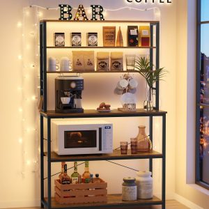 Maximiza el espacio de tu cocina con esta estantería de cocina multifuncional de 6 niveles. Su diseño práctico y robusto ofrece una solución de almacenamiento todo en uno, perfecta para cocinas compactas o para crear una mini cafetería en casa. Con estantes superiores para botellas, estantes inferiores grandes para electrodomésticos y ganchos para utensilios, esta estantería optimiza el almacenamiento y la organización de tu cocina.