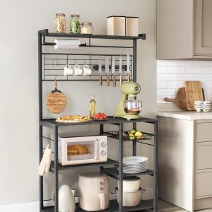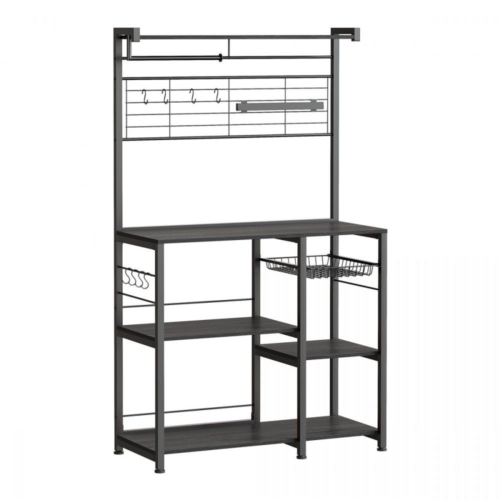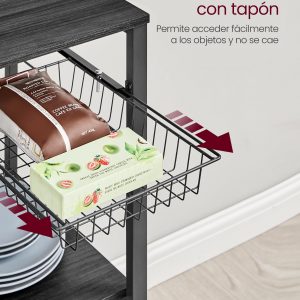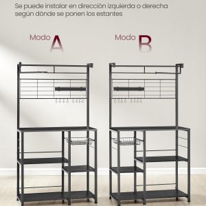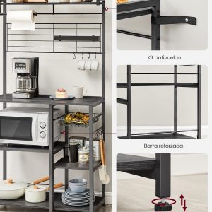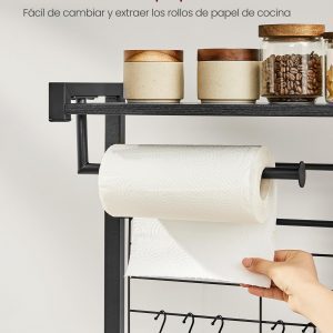 Estantería con isla de cocina, tira magnética y soporte rollos, roble ébano