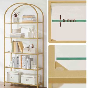 Estantería Elegante en Forma de Arco con Estantes de Vidrio