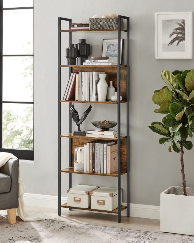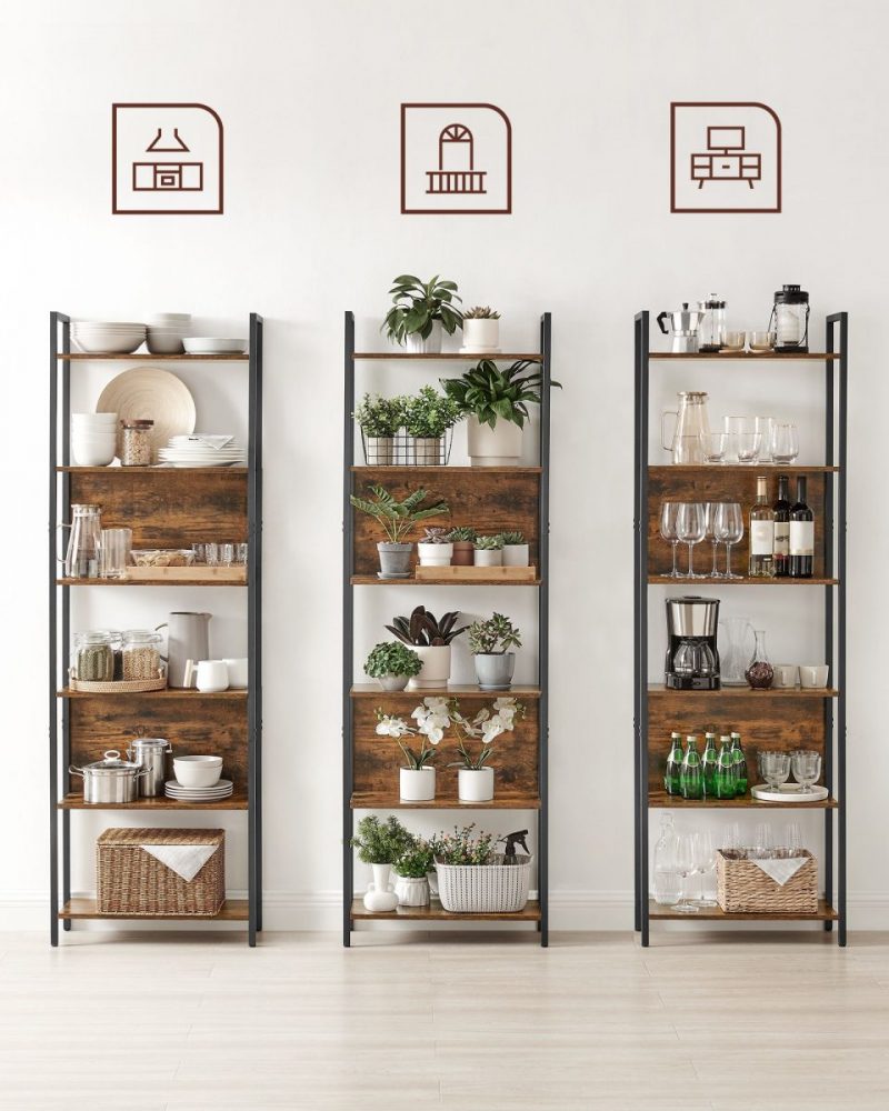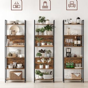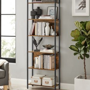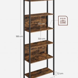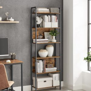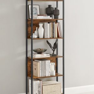 Estantería de acero con 6 estantes marrón rústico, multifuncional