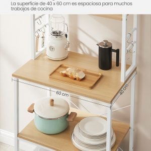 Aprovechamiento Máximo del Espacio: Con sus dimensiones compactas de 40 x 60 x 167 cm, esta estantería de 6 niveles es ideal para cocinas pequeñas o como una estación de café miniatura, permitiéndote sacar el máximo provecho de cada centímetro de tu cocina.