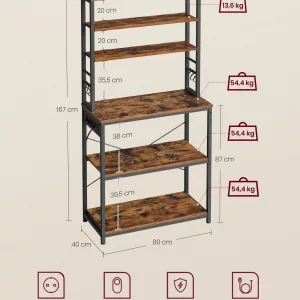 Delicias en Espacios Pequeños: Con unas dimensiones compactas de 40 x 80 x 167 cm, esta estantería de cocina de 6 niveles es perfecta para cocinas pequeñas. También funciona excelentemente como una mini cafetería, permitiéndote aprovechar al máximo cada centímetro de tu espacio.