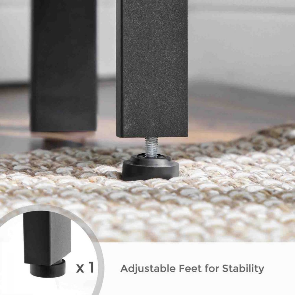 Pensada para un uso seguro y estable, la estructura de tres patas de nuestra estantería incluye tapas protectoras ajustables en la parte inferior, asegurando un equilibrio perfecto incluso en superficies irregulares. Además, incluimos una cuerda de fijación para anclar el mueble a la pared, garantizando una seguridad adicional para ti y tu familia.