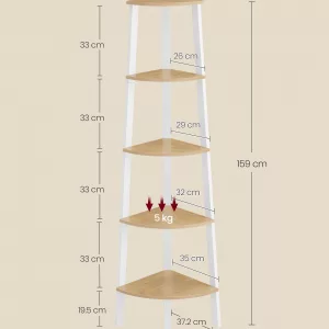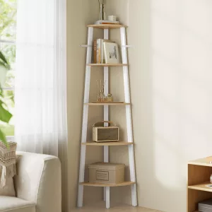 Estantería de Esquina con 5 Estantes Roble Natural y Blanco Mate