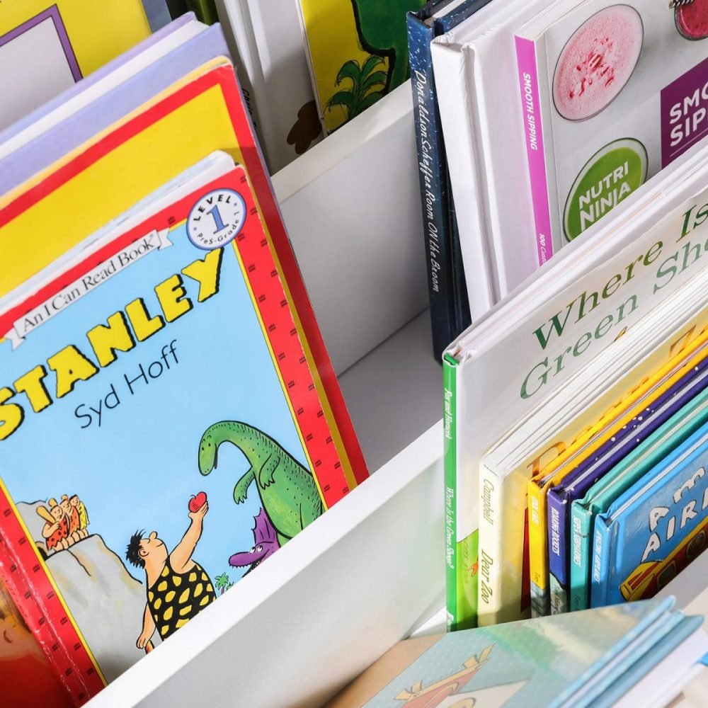 Diseñada especialmente para los más pequeños, esta librería está a la altura ideal para que los niños alcancen sus libros favoritos. Las asas talladas permiten un fácil agarre, mientras que las esquinas redondeadas y el kit anti-vuelco garantizan un entorno seguro para la diversión y la lectura.