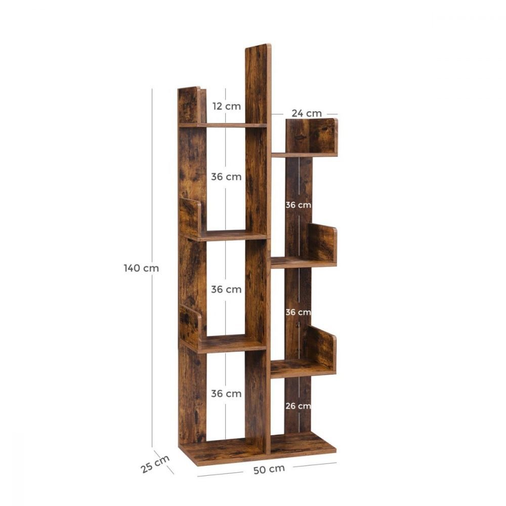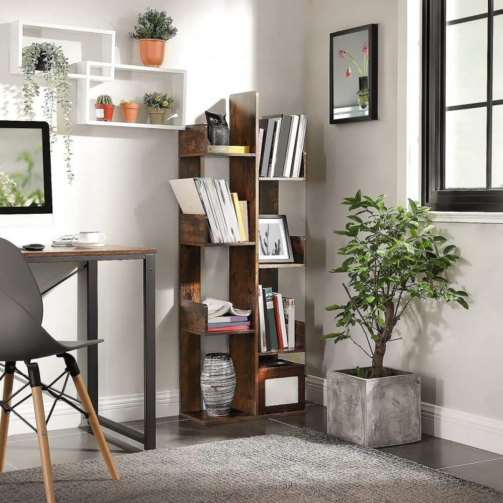 Diseño Inspirador: Ramas estilizadas que proporcionan 8 compartimentos para una organización versátil de libros, CDs, revistas y más.