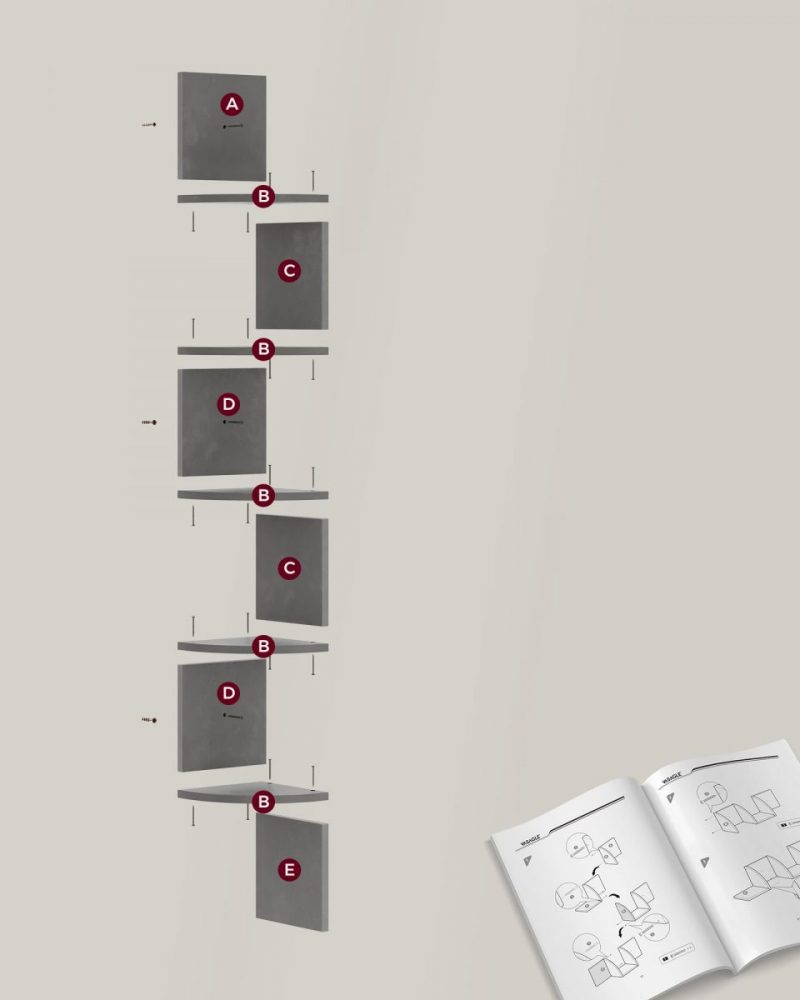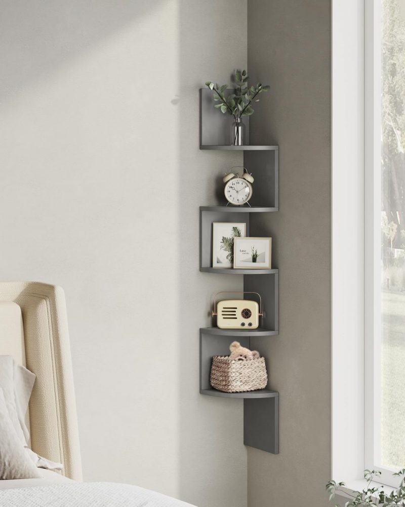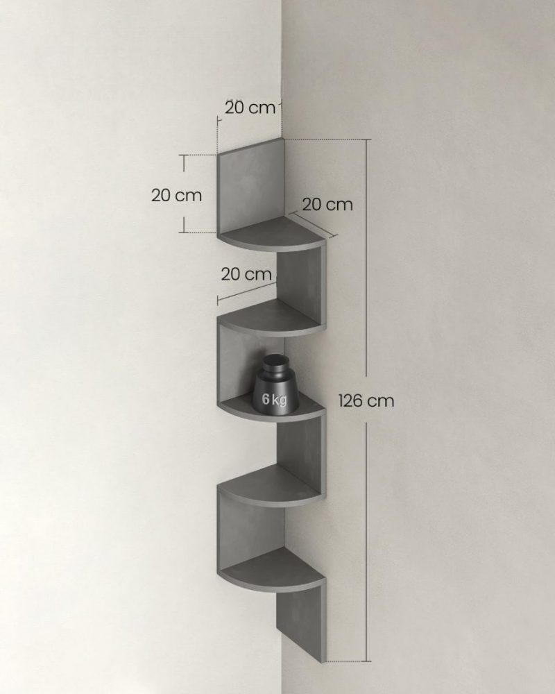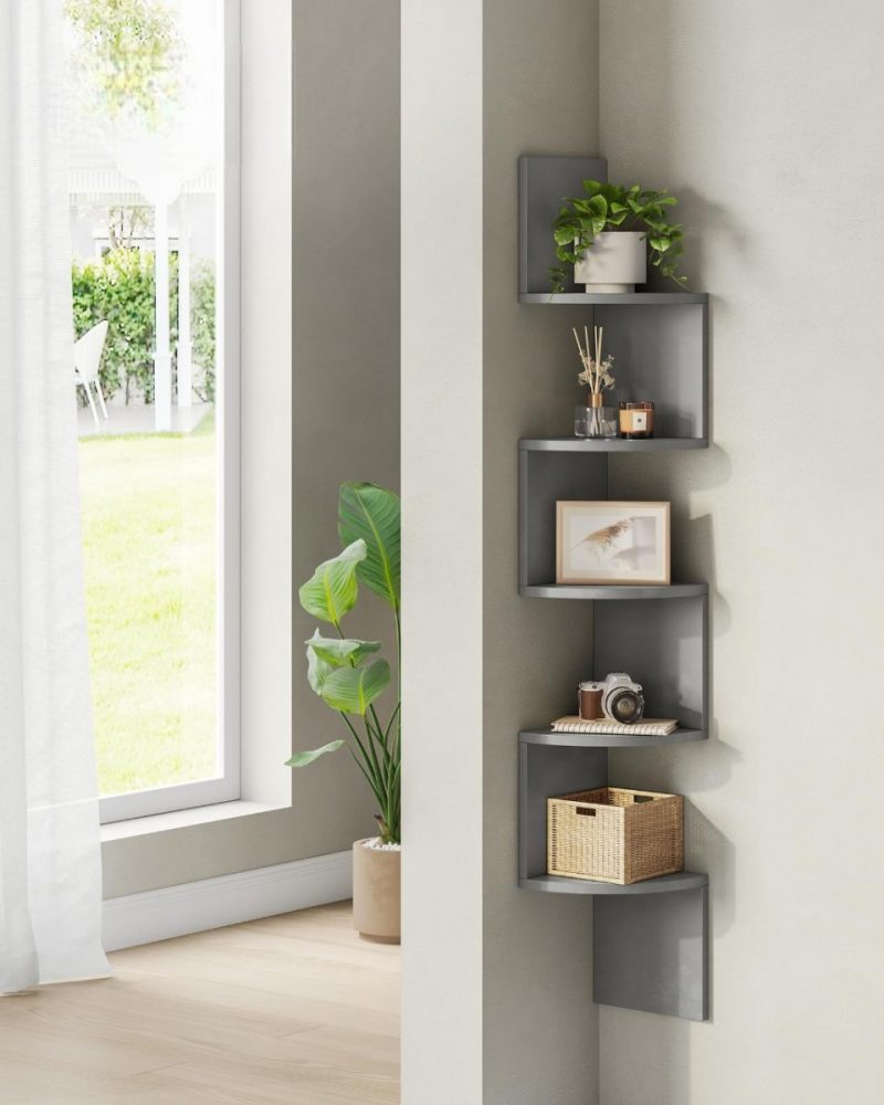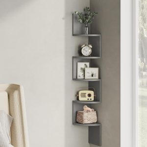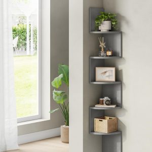 Estantería esquina 5 niveles, madera, cocina, dormitorio, estudio, gris paloma