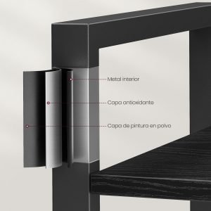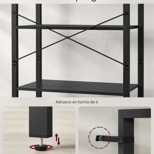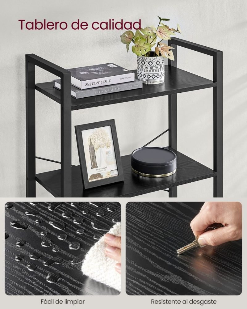 - Construcción Robusta: Fabricada con tableros de aglomerado de alta calidad y un marco de acero sólido, esta estantería está diseñada para soportar el paso del tiempo. Con una capacidad de carga de hasta 10 kg por estante, es ideal para sostener desde libros y plantas hasta reliquias familiares.