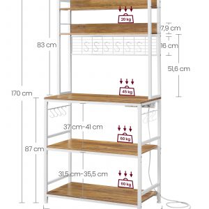 5 estantes para tu microondas, cafetera, freidora de aire y otros electrodomésticos, 14 ganchos en forma de S para colgar tus tazas o cucharones en el panel de alambre o barras laterales – esta estantería de cocina libera tu espacio.