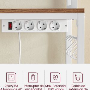 La regleta tiene 4 tomas de AC para que pueda enchufar varios electrodomésticos y admite hasta 1875 vatios. El diseño integrado mantiene todos los cables bien ocultos en los estantes para un aspecto ordenado.