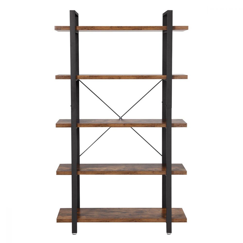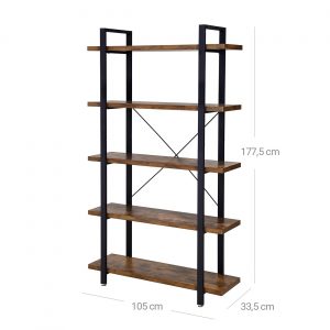 Estantería para salón, 5 estantes, almacenamiento estable, marrón
