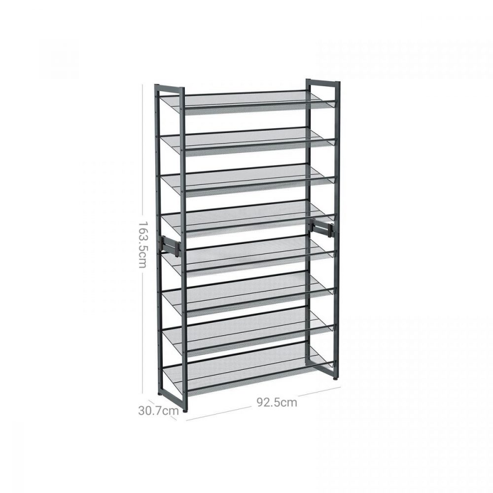 A Tu Manera: Personaliza la organización de tus zapatos como desees. Con 8 niveles, puedes amontonar los estantes, separarlos en dos unidades de 4 niveles para diferentes habitaciones, o montar los estantes de forma plana o en ángulo, según prefieras. La decisión es tuya.