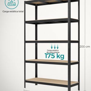 Gran Tamaño y Capacidad de Carga: Con unas dimensiones de 60 x 120 x 200 cm y una capacidad de carga total de 875 kg, esta estantería es perfecta para organizar todas tus herramientas y equipos, desde pequeños accesorios hasta equipos pesados.