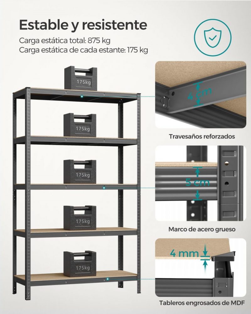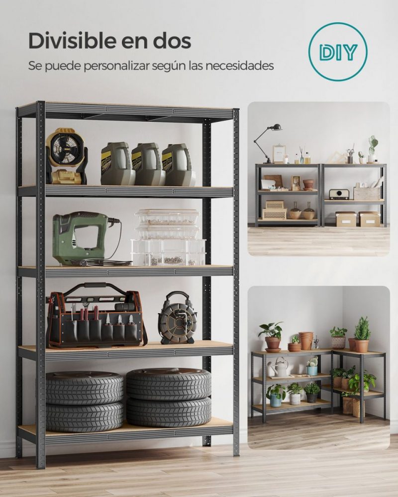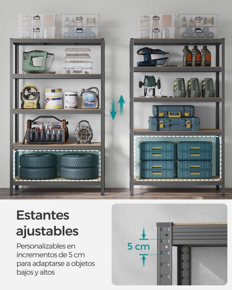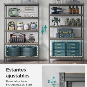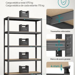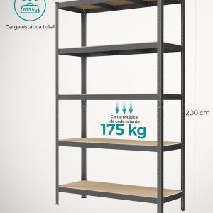 Estantería pesada de 5 niveles 60x120x200 cm gris