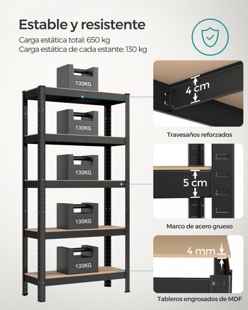 Máx. capacidad de carga estática de cada estante: 130 kg