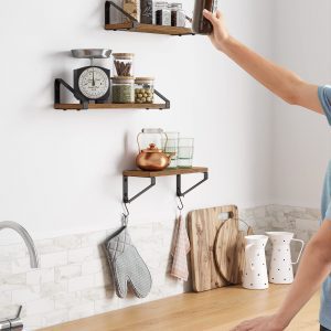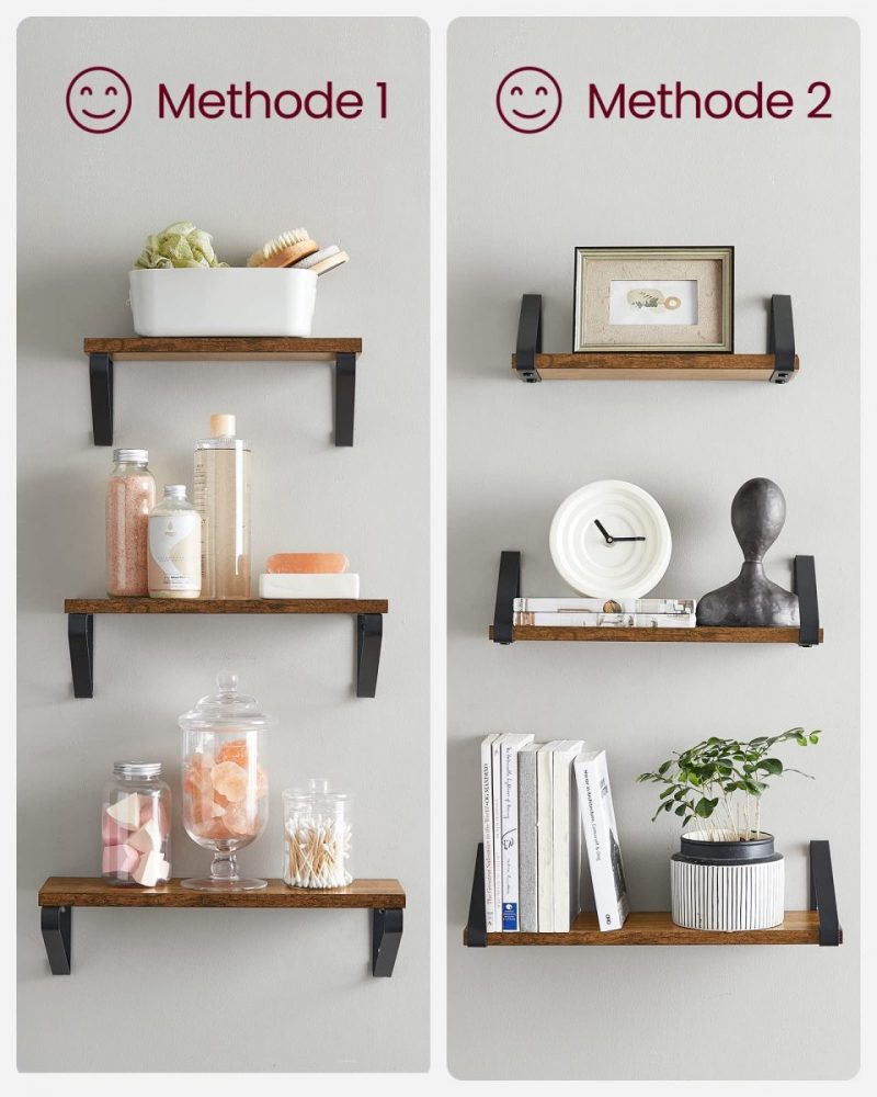 Los estantes están construidos con soportes duraderos de madera y hierro para garantizar una base robusta y duradera. Pueden soportar libros, plantas en macetas, especias o artículos de tocador sin comprometer su integridad estructural.