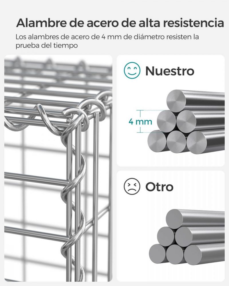 Detalles: Dimensiones: GGB133: 100 × 30 × 30 cmMalla: 10 x 5 cmAlambre: Ø 4 mmMaterial: Alambre de acero galvanizado (Resistente a la corrosión)Color: Gris; Plateado