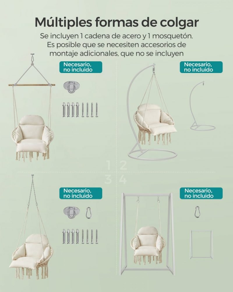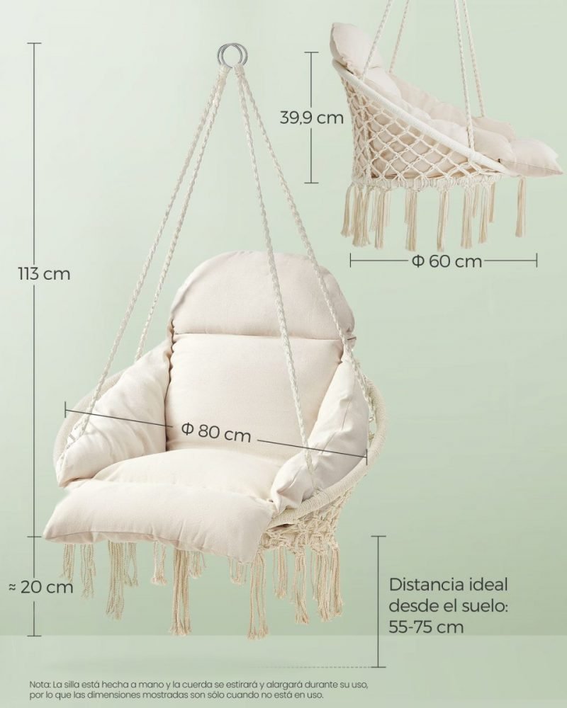 Contenido del paquete: 1 x Hamaca1 x Cojín