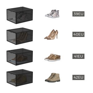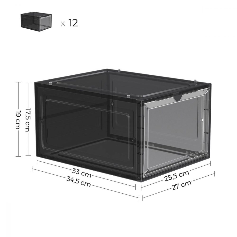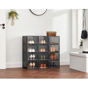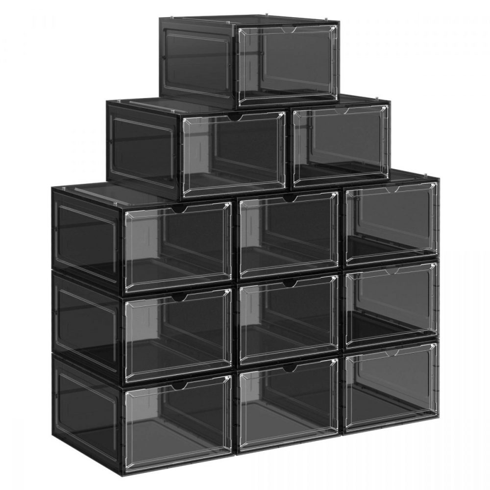Juego de 12 cajas de zapatos apilables, plástico, negro