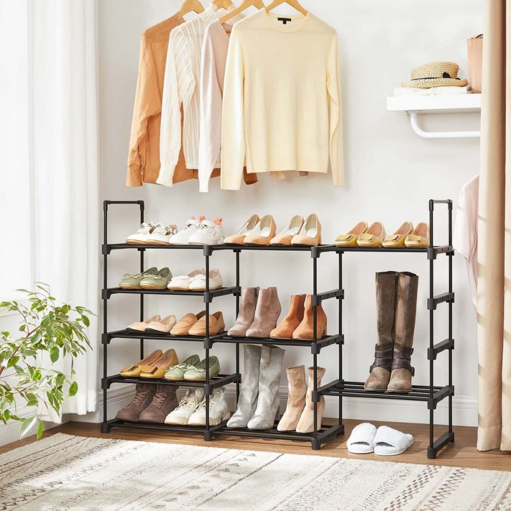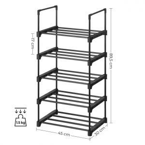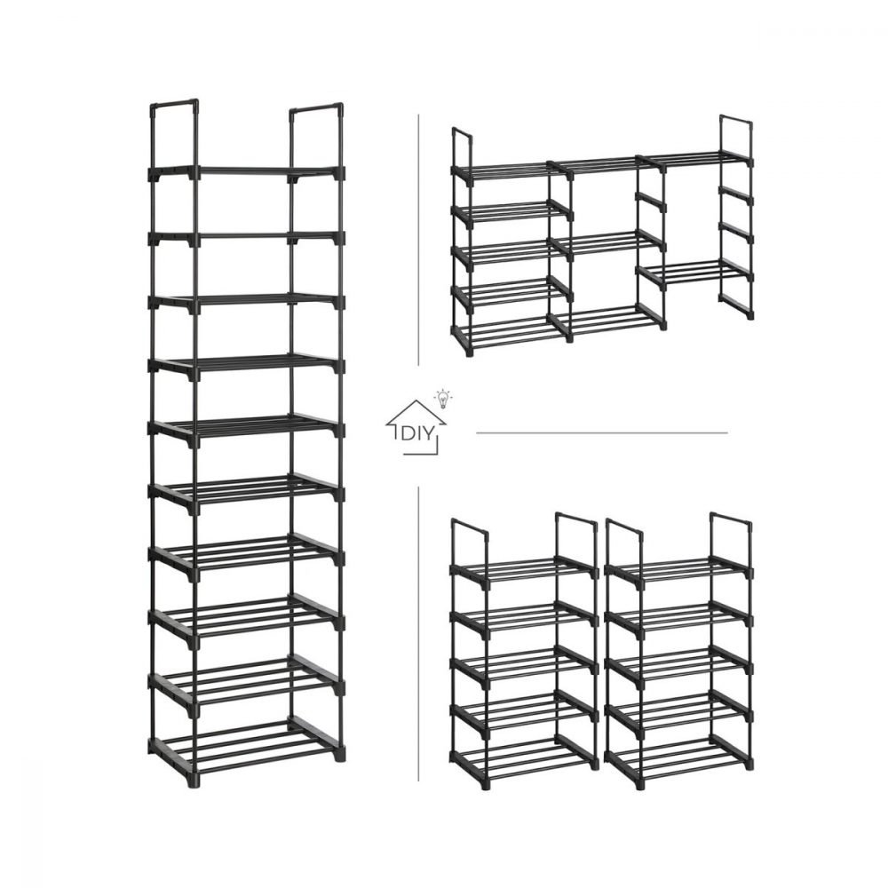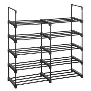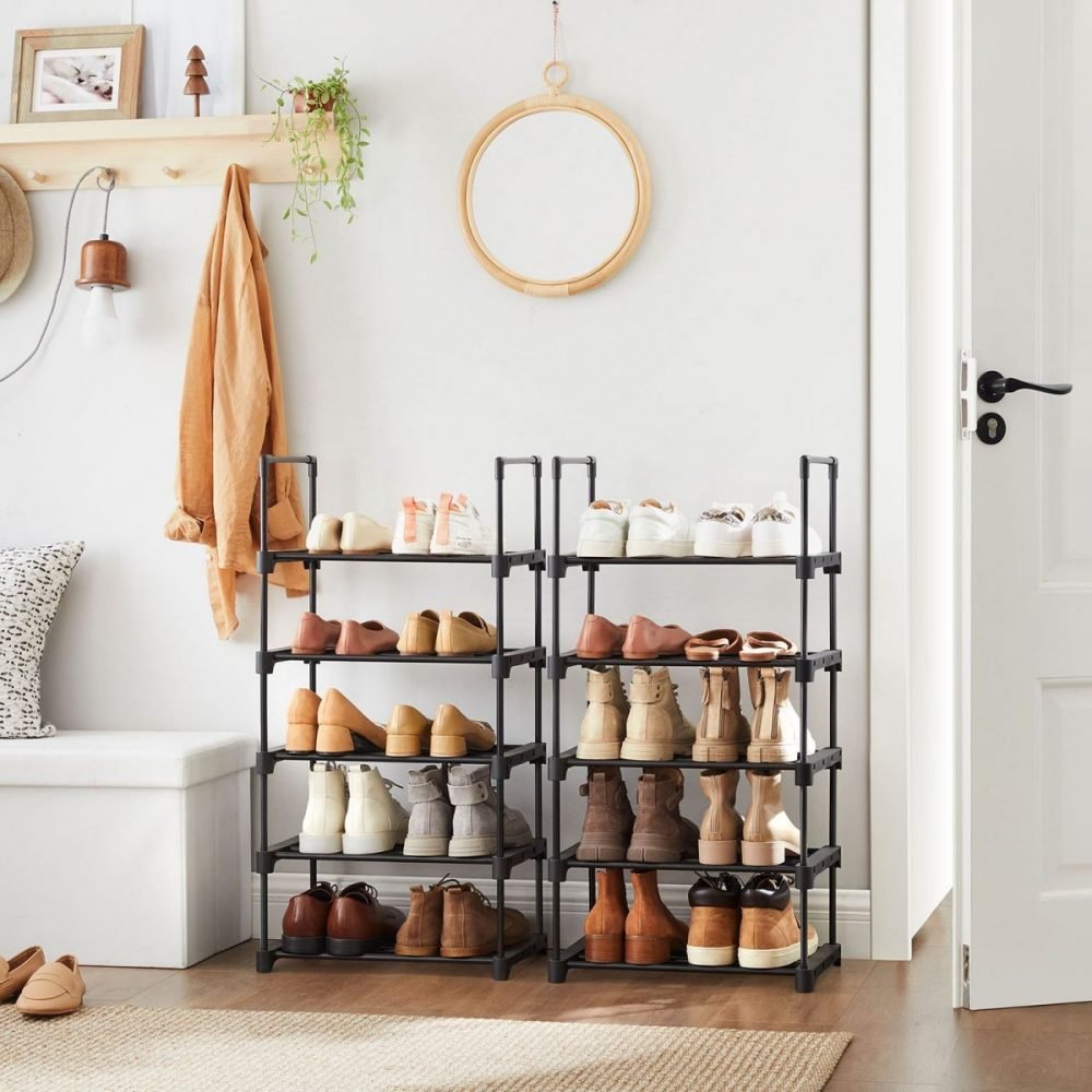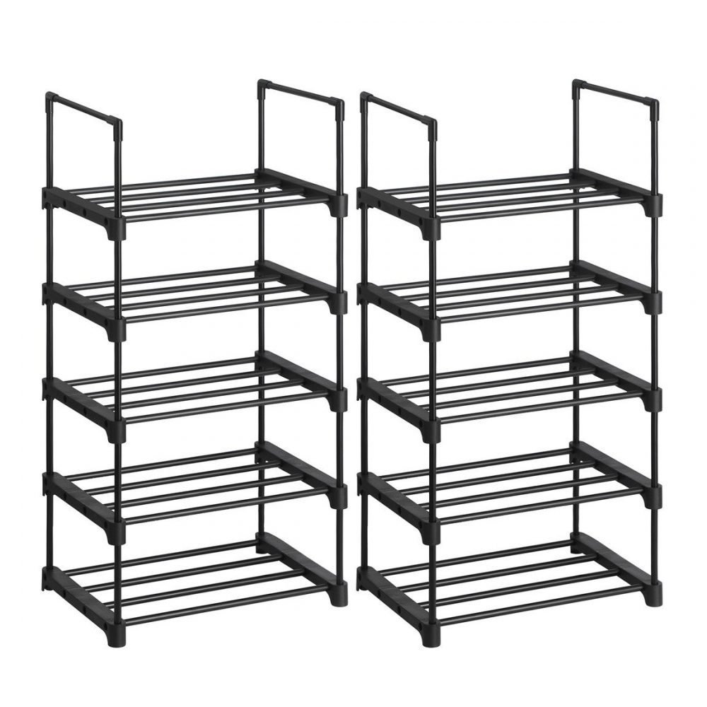 Juego de 2 estantes zapateros apilables de 5 niveles, negro