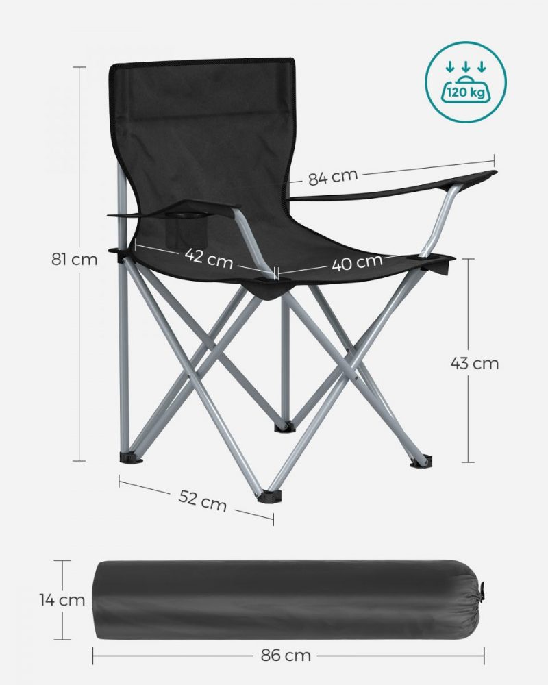 Dimensiones plegadas de cada silla: 14 x 86 x 14 cm (Profundo x Ancho x Alto)