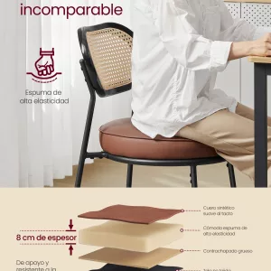 Fácil de Limpiar: El tapizado en cuero sintético es fácil de mantener limpio. Solo necesitas un paño húmedo para eliminar manchas, lo que facilita el mantenimiento diario.
