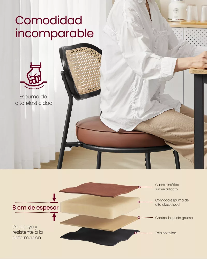 Este juego de taburetes de bar está diseñado para ofrecerte el máximo confort mientras complementa la decoración de tu hogar con un toque bohemio. Con un respaldo curvado y ventilado hecho de ratán PE, estos taburetes brindan un asiento ergonómico ideal para cualquier ocasión, ya sea para comer, trabajar o relajarte. Los materiales de alta calidad y el diseño práctico aseguran que, además de estéticos, estos taburetes sean duraderos y fáciles de mantener.