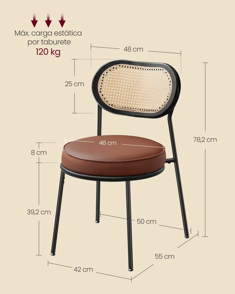 Capacidad de Carga Estática Máxima por Taburete: 120 kg