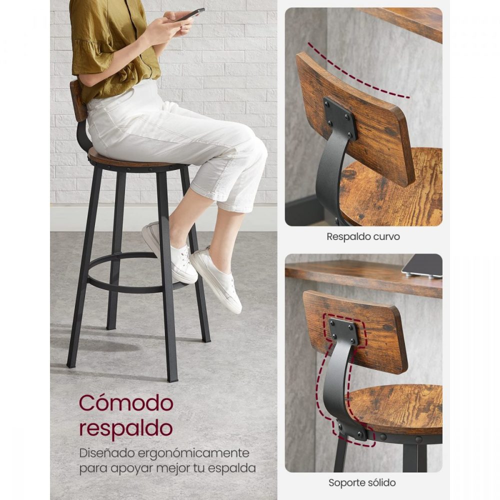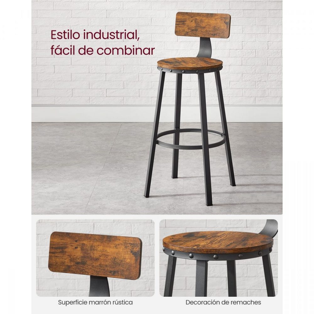 Con una superficie de vetas de madera marrón rústico, marco de metal negro y remaches, estos taburetes altos de estilo industrial son perfectos para tu área de bar, cocina, comedor y más.
