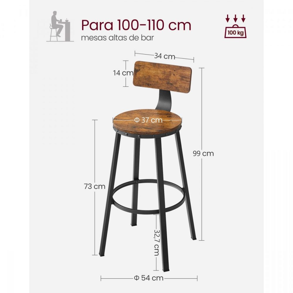 Máx. capacidad de carga estática cada taburete: 100 kg
