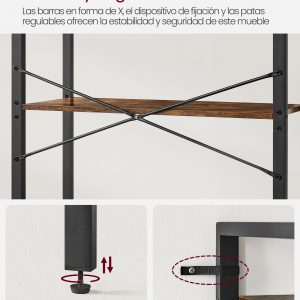 Estable y Seguro: Las barras en forma de X refuerzan la estructura, mientras que las patas ajustables aseguran una buena estabilidad incluso en suelos ligeramente irregulares. Además, el kit antivuelco incluido te permite fijar la estantería a la pared para mayor seguridad.