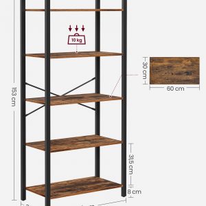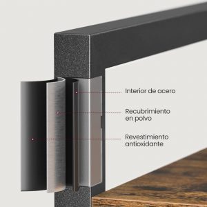 Ambiente Industrial: Los estantes en marrón rústico combinados con el marco de acero negro crean un atractivo estilo industrial. Este diseño permite que la estantería se integre perfectamente en cualquier interior, añadiendo un nuevo y elegante aspecto a tu espacio.