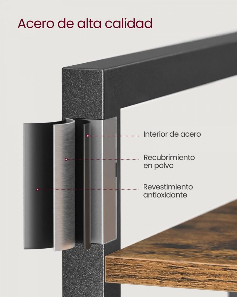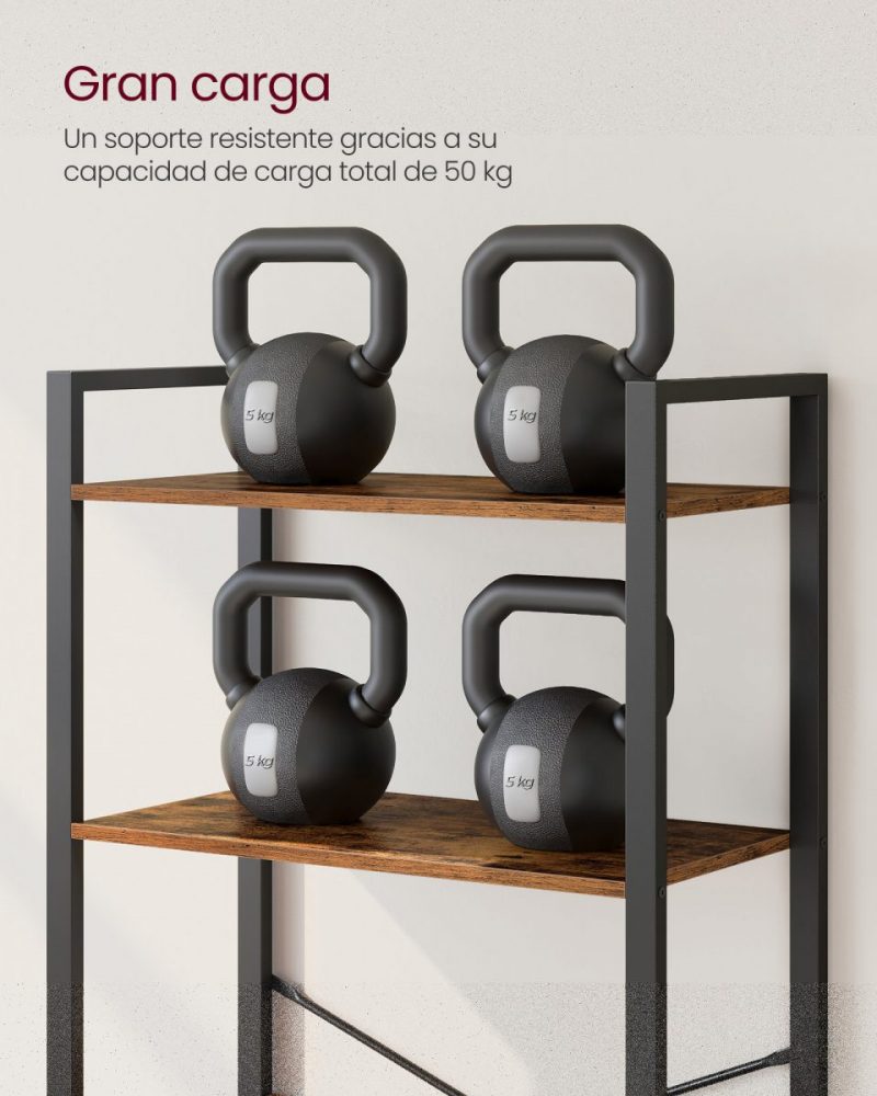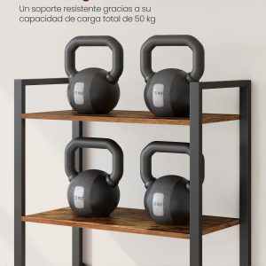 Hecho para Durar: Construida con tableros de aglomerado de alta calidad y un marco de acero resistente, esta estantería está diseñada para soportar hasta 50 kg en total, lo que garantiza durabilidad y estabilidad durante años.