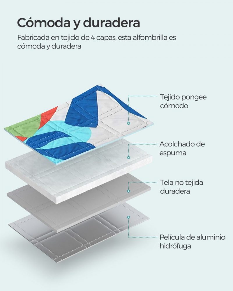 Especificaciones: Color: Helecho Colorido Material: Superficie de Pongee, Acolchado de Esponja, Capa de Aluminio Tamaño plegado: 42 x 17 x 17 cm (Largo x Ancho x Alto)Tamaño desplegado: 200 x 200 cm (Largo x Ancho)Peso del producto: 1 kg
