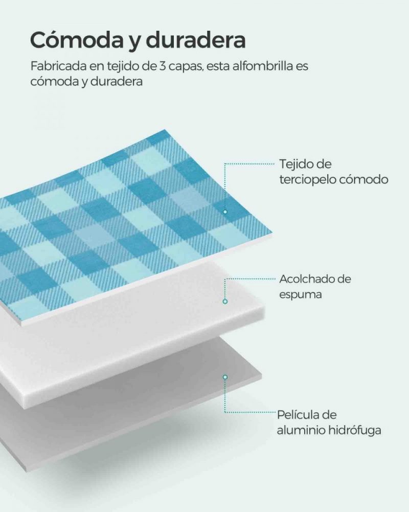 Color: Verde, Azul Material: Superficie de Vellón, Acolchado de Esponja, Capa Inferior de Aluminio