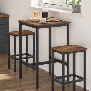 Diseño Ahorrador de Espacio: Con medidas de 60 x 60 x 90 cm para la mesa y 30 x 40 x 65 cm para cada taburete, este conjunto es ideal para espacios reducidos. Además, puedes guardar los taburetes debajo de la mesa para maximizar el espacio cuando no los uses.