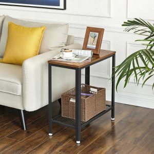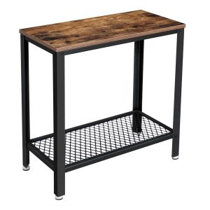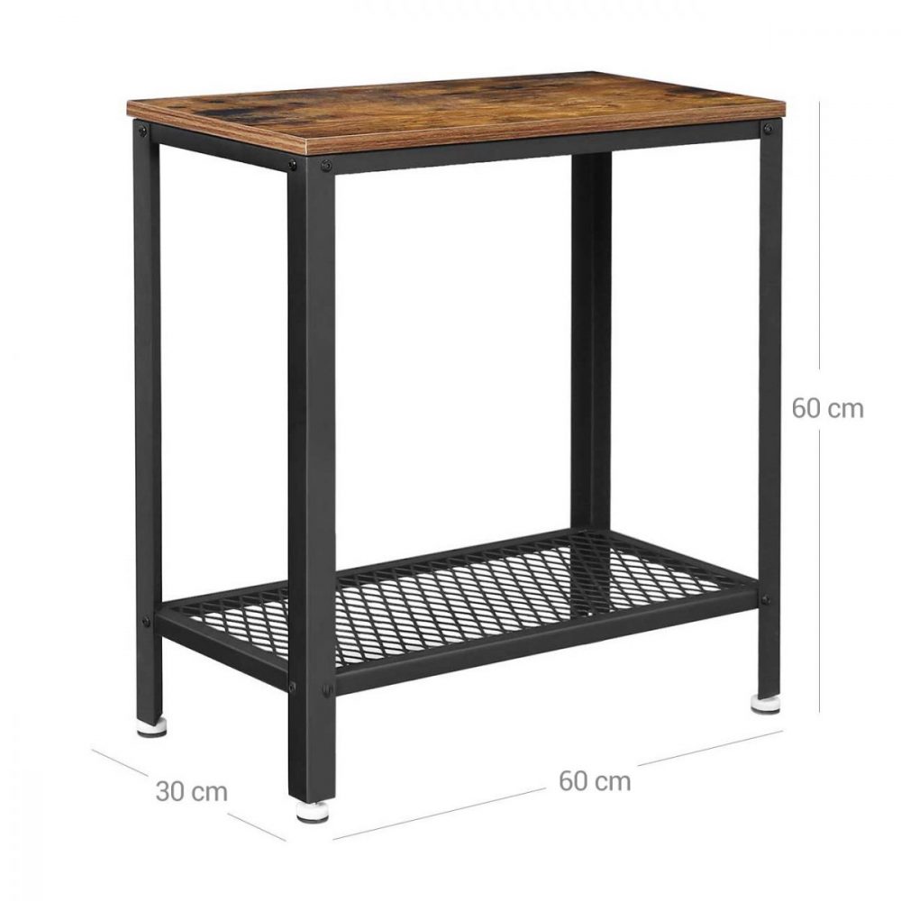 Construcción Robusta: La combinación de un marco de hierro resistente y madera de ingeniería asegura una excelente estabilidad. La mesa puede soportar hasta 20 kg en la superficie principal y 10 kg en la bandeja de malla, ofreciendo suficiente resistencia para tus necesidades de almacenamiento.