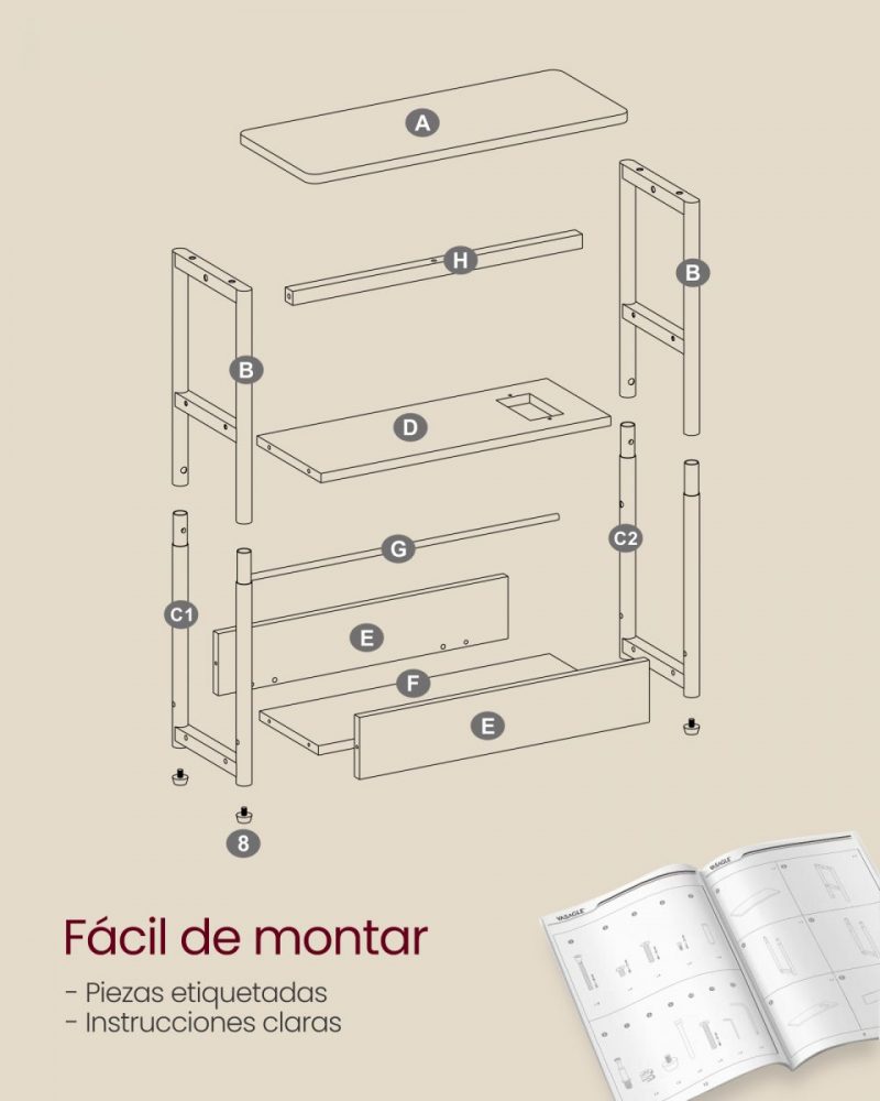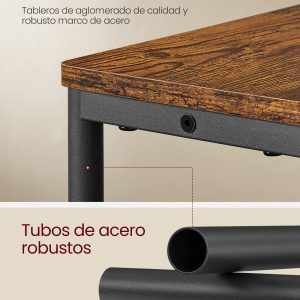 Construcción Robusta y Duradera: La combinación de un marco de acero robusto y tablero de aglomerado de calidad garantiza que la mesa auxiliar pueda soportar hasta 100 kg, ofreciendo una base sólida para tus elementos esenciales diarios.