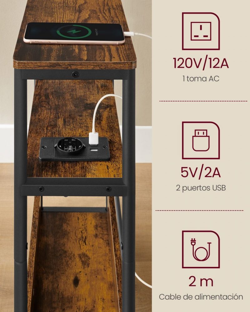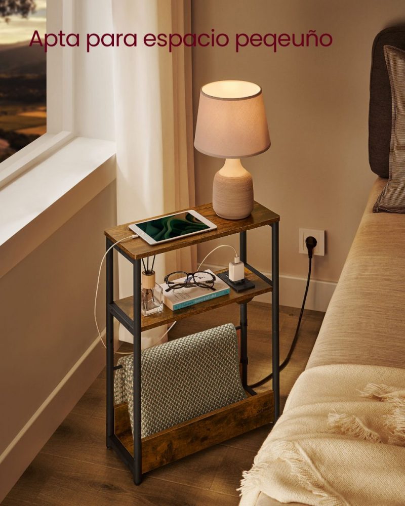 Maximiza el potencial de tus espacios más pequeños con nuestra Mesa Auxiliar con Estación de Carga Integrada, diseñada específicamente para ajustarse a espacios estrechos y proporcionar funcionalidad adicional a tu sala de estar o dormitorio. Este mueble no solo es una pieza elegante que se adapta perfectamente al lado de tu sofá o cama, sino que también ofrece una solución práctica para cargar dispositivos y almacenar objetos cotidianos.