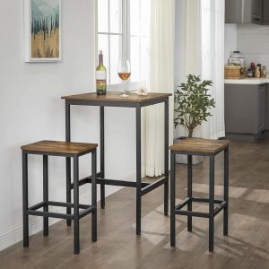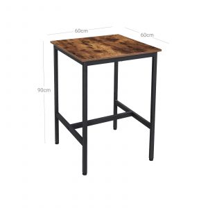 Mesa bar cuadrada alta, estilo industrial, marrón vintage