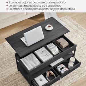 Agrega funcionalidad y estilo a tu sala de estar con esta versátil mesa de centro elevable.