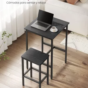 Si buscas un mueble multifuncional que se adapte a varios espacios y necesidades, ¡aquí lo tienes! Este conjunto de mesa y taburetes es ideal tanto para comenzar el día con un desayuno acogedor en la cocina, disfrutar de una copa de vino por la noche, o montar un práctico espacio de trabajo en casa.