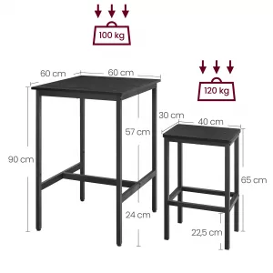 Diseño Ahorrador de Espacio: Con medidas de 60 x 60 x 90 cm para la mesa y 30 x 40 x 65 cm para cada taburete, este conjunto es ideal para espacios reducidos. Además, puedes guardar los taburetes debajo de la mesa para maximizar el espacio cuando no los uses.