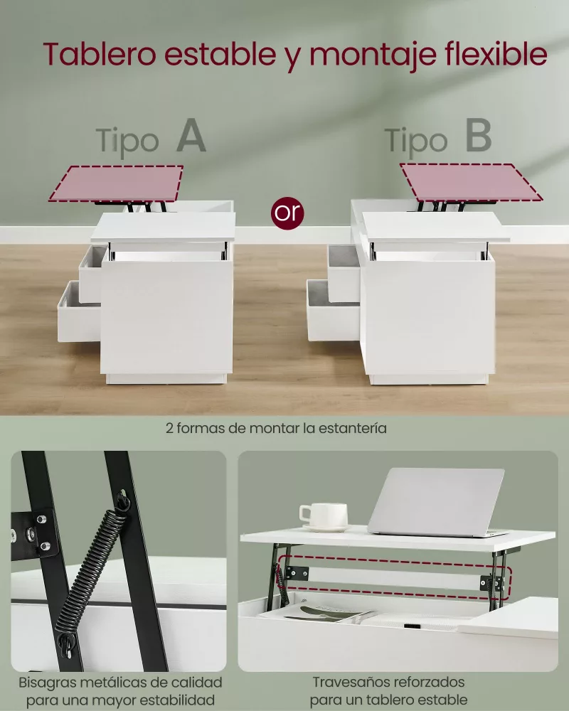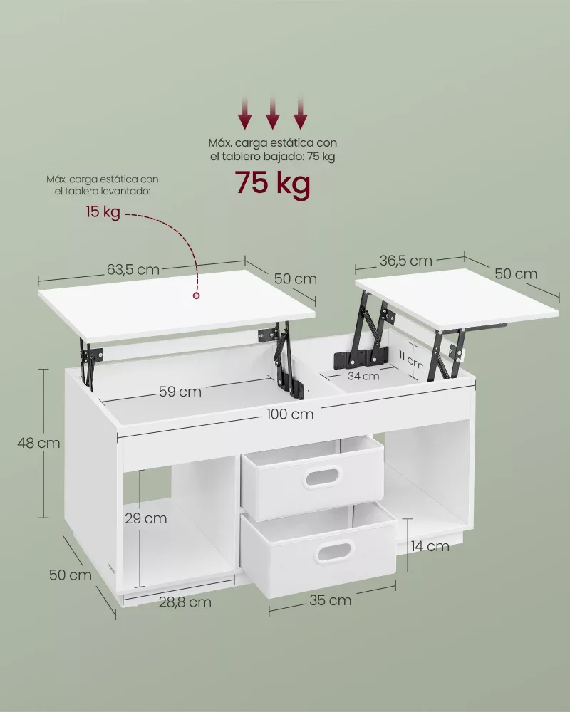 Dimensiones del producto: 50 x 100 x 48/62,3 cm (Profundo x Ancho x Alto)