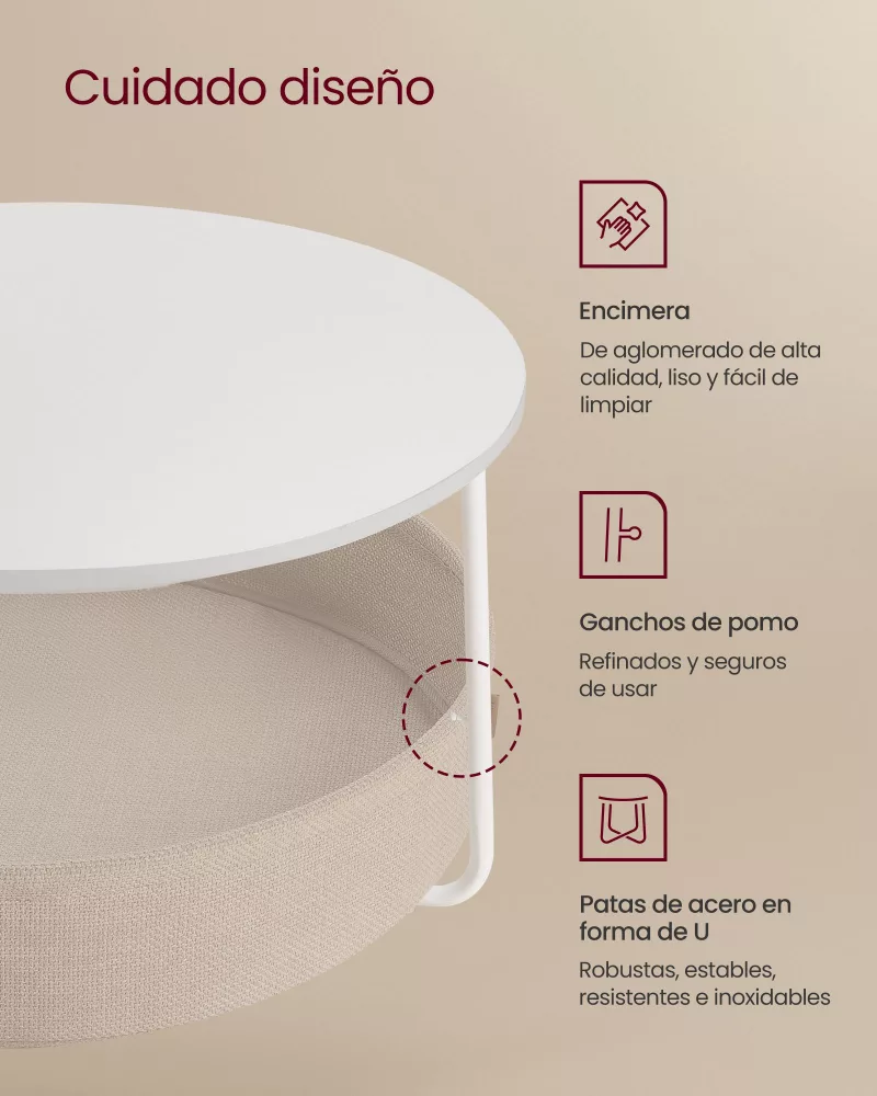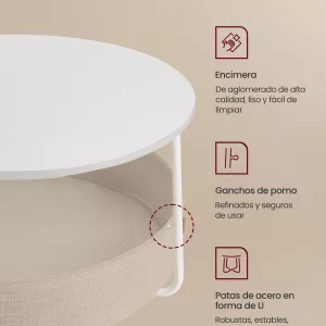 Cesta Práctica: Equipado con una cesta de tela de doble capa que no se arruga, esta mesa ofrece una capacidad de 57,7 L, perfecta para almacenar mantas, almohadas, libros y otros objetos de uso diario. Mantén tu sala de estar ordenada y tus pertenencias bien organizadas.