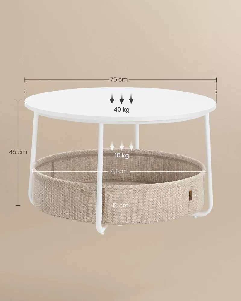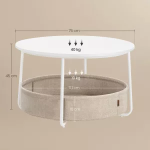 Tamaño Perfecto: Con unas dimensiones de 75 x 45 cm (Diámetro x Altura), esta mesa de centro redonda es ideal para cualquier sala de estar, proporcionando un espacio práctico tanto para relajarte como para trabajar.