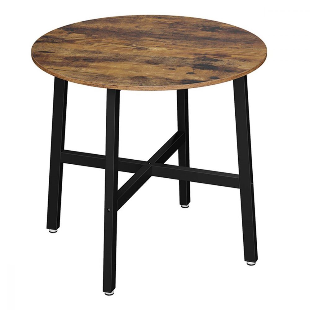 Esta mesa redonda, con su marco de acero negro y paneles de madera de estilo rústico, es el complemento perfecto para tu cocina, sala de estar u oficina. Su diseño industrial, pero elegante, añade un toque de clase y versatilidad a cualquier espacio.