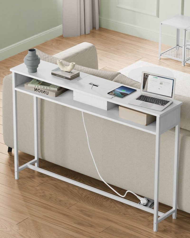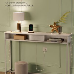 Eleva la funcionalidad y el estilo de tu espacio con nuestra Mesa Consola de Carga, diseñada meticulosamente para adaptarse a las necesidades modernas de conectividad y organización. Equipada con 2 tomas de CA y 2 puertos USB, esta mesa delgada se convierte en el centro de carga ideal para todos tus dispositivos, desde lámparas y teléfonos hasta tabletas y consolas de juegos, todo al alcance de tu mano.